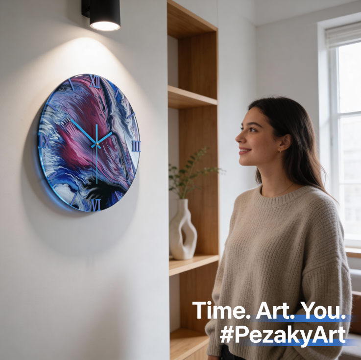 Wie op zoek is naar een bijzondere wandklok die nergens anders bestaat, vindt bij PezakyArt een design dat tijd en kunst samenbrengt.